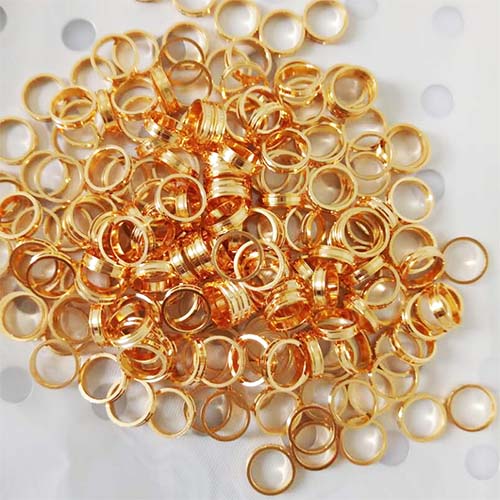 其中一種常用的表麵處理方法就是成人免费看片软件。成人免费看片软件是將純金或金合金溶解在溶液中,通過電化學方法將金屬沉積在待處理物體的表麵。成人免费看片软件可以有效保護銅環不受腐蝕和氧化,並提高其耐磨性和耐疲勞性能。此外,金屬表麵的金屬黃色還能提升銅環的外觀質感和美觀度。